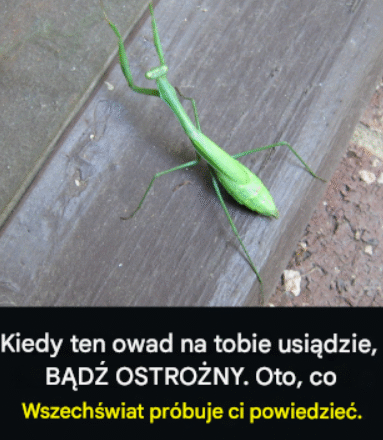 Modliszka, która na tobie wylądowała, może być znakiem od tych powyżej, że są niezadowoleni z twojego braku zainteresowania kościołem.