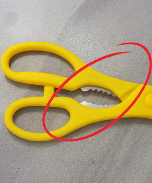 Prawdopodobnie zauważyłeś tę nieco dziwną, ząbkowaną część między rękojeściami kuchennych nożyczek.