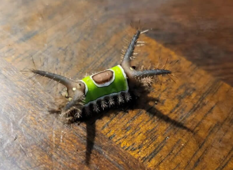 Powoli przesuwał się po podłodze, a z jego ciała wystawały ciemne kolce – długie i cienkie, jakby specjalnie ostrzegał: „Nie dotykaj mnie”.