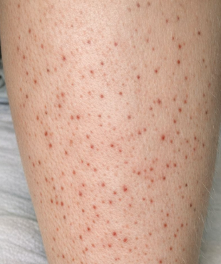 Te kropki mogą być wybroczynami – drobnymi czerwonymi lub fioletowymi plamkami powstałymi w wyniku pękania małych naczyń krwionośnych pod skórą. Mogą być spowodowane niewielkim naciskiem lub chorobami wpływającymi na naczynia krwionośne lub płytki krwi.