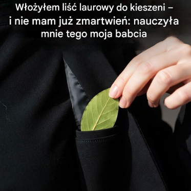 Więc następnym razem, gdy będziesz miał zamiar wyjść, dlaczego by nie spróbować? Wsunięcie liścia laurowego do kieszeni nic nie kosztuje, nie obiecuje niczego nadzwyczajnego, ale może wystarczyć, by odmienić twój stan umysłu… a czasem to już jest ogromna zmiana.