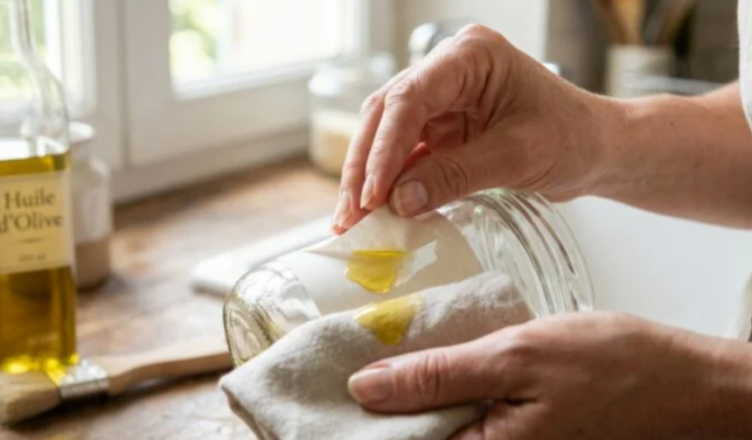 Ta oliwa z oliwek sprawdza się na etykietach samoprzylepnych . Na szkle lub plastiku wystarczy nanieść odrobinę na miękką ściereczkę i zetrzeć rozmiękczony klej. Aby usunąć etykietę bez skaleczenia palców, wykonaj następującą procedurę: