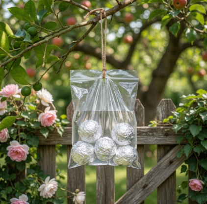 Słynny woreczek z wodą zawieszony wysoko opiera się właśnie na tym pomyśle: pełni on funkcję małego repelentu wizualnego i zapachowego.